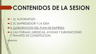 Este documento presenta información sobre la elaboración de un plan de empresa. Explica que un plan de empresa es un documento que describe un proyecto empresarial y establece objetivos y acciones para alcanzarlos. Detalla cómo se estructura un plan de empresa, incluyendo secciones sobre el producto o servicio, estudios de mercado, planes de marketing, producción, recursos, finanzas y evaluación de viabilidad. Finalmente, identifica técnicas y recursos disponibles para elaborar un plan de empresa como encuestas, entrevistas y herramientas en línea.