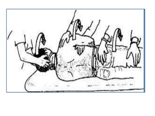 Este documento describe los principios básicos de la inmovilización de lesiones y fracturas. Explica que la inmovilización alivia el dolor y previene más daños a los tejidos. Detalla diferentes técnicas de inmovilización para diferentes partes del cuerpo y durante el traslado de pacientes. Resalta que todo paciente politraumatizado debe ser transportado por el sistema de emergencia médica.
