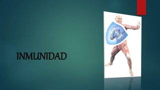 Este documento describe los componentes y funciones del sistema inmunológico. Explica que el sistema inmunológico protege al organismo de infecciones mediante la identificación y eliminación de agentes patógenos. Luego describe varios órganos y tejidos que participan en la respuesta inmune como los ganglios linfáticos, médula ósea, amígdalas, timo, bazo y placas de Peyer. También explica cómo el organismo responde a una invasión bacteriana a través de la activación del sistema inm