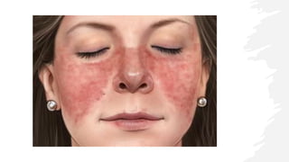 • Erupción malar en forma de mariposa sobre mejillas y nariz.