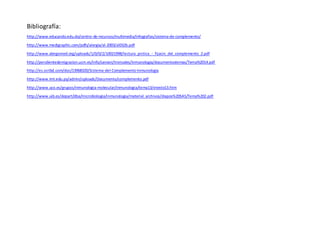 El sistema del complemento es un sistema compuesto por más de 30 proteínas que interactúan formando una cascada cuyas funciones son incrementar la respuesta inmunitaria, facilitar la fagocitosis y dirigir la lisis celular. Este sistema puede activarse por la vía clásica a través de la unión de proteínas como la lecitina a polisacáridos bacterianos o por la vía alterna.
