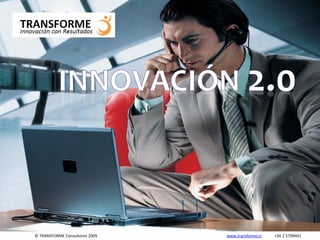 Este documento presenta el modelo de gestión de la innovación de TRANSFORME Consultores. Explica que la innovación es un proceso que requiere compromiso gerencial, financiamiento, cambio cultural e incentivos. También describe cómo las nuevas tecnologías como wikis, blogs y redes sociales pueden usarse como herramientas colaborativas para capturar ideas e información. El modelo integra estas herramientas en una plataforma que apoya todo el proceso de innovación.