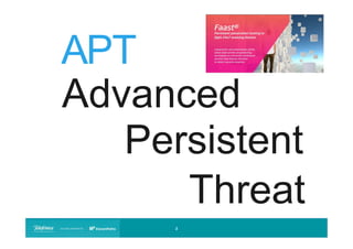 El documento analiza la seguridad frente a amenazas persistentes avanzadas (APT) y la resiliencia en tres fases: descubrimiento, análisis y explotación. También se menciona la importancia de la persistencia en la defensa contra estas amenazas. Además, se hace referencia a la herramienta FAAST y su función dentro del proceso de seguridad.
