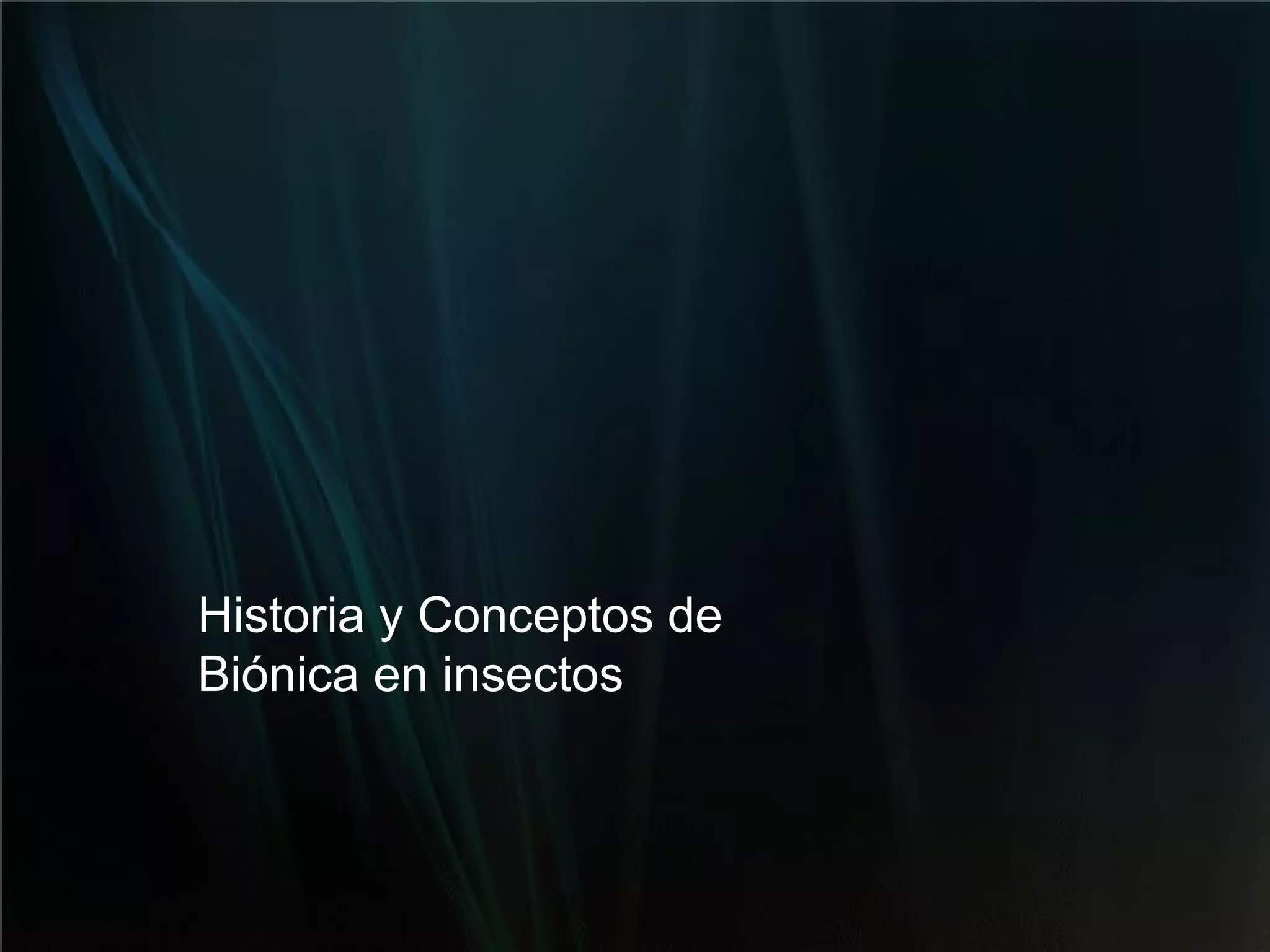 Este documento resume la historia y conceptos de la biónica aplicada a insectos. Examina cómo la biónica estudia sistemas biológicos para descubrir nuevos principios aplicables a la tecnología. También describe cómo características de sistemas biológicos como la miniaturización, sensibilidad y adaptabilidad han inspirado innovaciones tecnológicas.