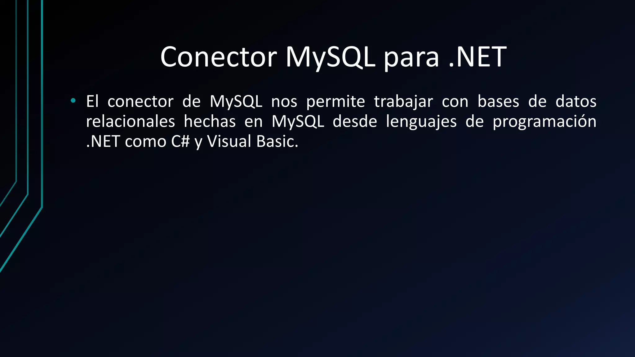 El documento describe los pasos para instalar el conector MySQL para .NET. Primero se debe descargar el archivo de instalación desde la página web oficial de MySQL y ejecutarlo. Luego, la instalación guiada instalará los componentes necesarios. Una vez finalizada la instalación, las bibliotecías estarán disponibles para trabajar con bases de datos MySQL desde lenguajes .NET como C#. El documento también presenta las principales clases del espacio de nombres MySql.Data.MySqlClient.