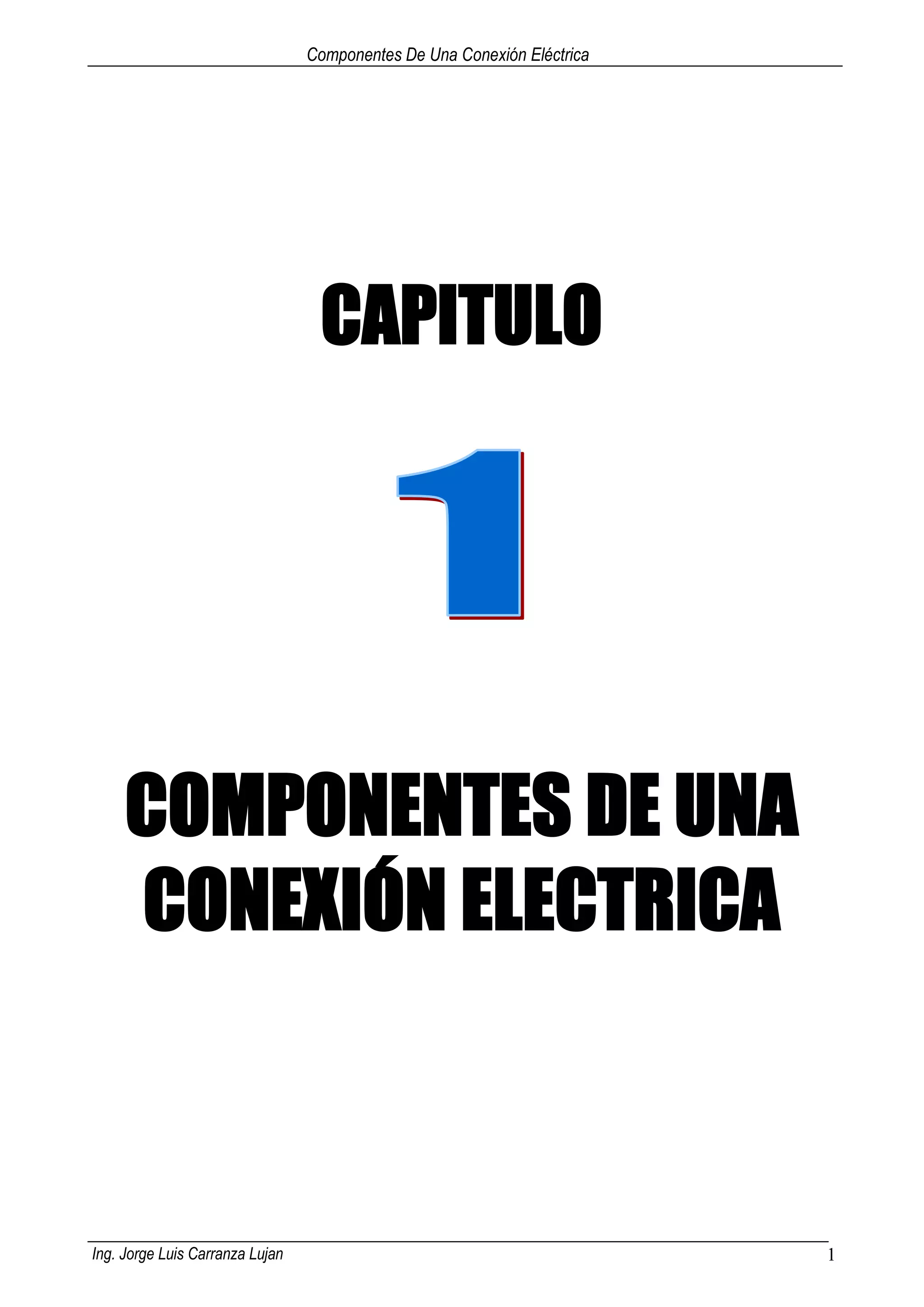 Este documento describe los componentes básicos de una conexión eléctrica, incluyendo conductores, accesorios eléctricos, corriente alterna y continua, y normas de seguridad. Explica conceptos como voltaje, intensidad, resistencia, potencia eléctrica y circuitos eléctricos. También cubre temas como la red eléctrica en el Perú, materiales conductores y aislantes, y el patrón de calibre de alambre americano.