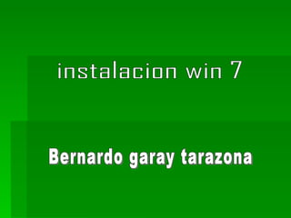El documento proporciona 13 pasos para instalar Windows 7 en un equipo. Estos incluyen cambiar el orden de arranque en la BIOS para priorizar el CD/DVD, seleccionar el idioma y configuración regional durante la instalación, aceptar los términos de la licencia, formatear y seleccionar la partición de instalación, ingresar la clave de producto, y configurar la hora y fecha.