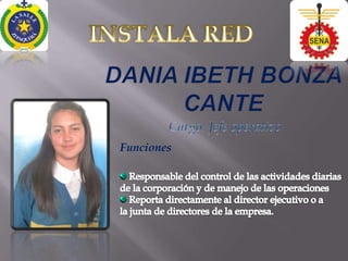 Este documento describe las funciones de mantenimiento de una empresa con sus empleados y clientes, así como el desarrollo del personal y la evolución de la empresa. También busca ser una empresa líder en la instalación de redes en su ciudad a través de la calidad de sus productos y servicios, y administrando proyectos de acuerdo con las estrategias planteadas.