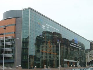 El documento describe las principales instituciones de la Unión Europea: el Consejo Europeo, el Consejo de Ministros, el Parlamento Europeo, la Comisión Europea, el Tribunal de Justicia, el Defensor del Pueblo, el Tribunal de Cuentas, el Comité de las Regiones y el Banco Central Europeo. Cada institución tiene funciones específicas en el marco constitucional y político de la Unión Europea.