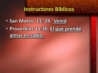 Este documento describe las cualidades y preparación necesarias para ser un ganador de almas efectivo. Enfatiza la importancia de la consagración personal, preparación intelectual y desarrollo del carácter de Cristo. Un ganador de almas debe poseer un amor irresistible por las almas perdidas, virtudes cristianas como la compasión y paciencia, y estar guiado por el Espíritu Santo para lograr cambios mentales en otros y llevarlos a Cristo.