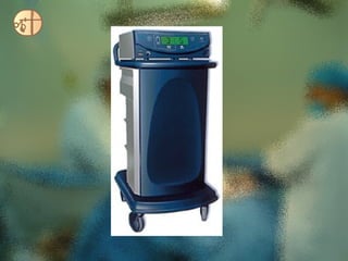 Este documento describe el instrumental quirúrgico básico, incluyendo bisturíes, pinzas, tijeras, separadores y otros dispositivos utilizados en cirugía. Explica las características y usos de cada instrumento, así como la técnica correcta para su manejo. También cubre el instrumental laparoscópico como trocares, laparoscopios y pinzas utilizadas en cirugía mínimamente invasiva.