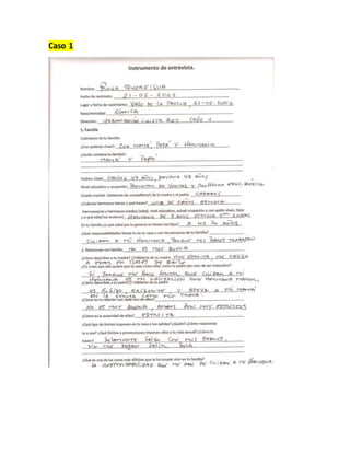 El documento describe un tratamiento dividido en sesiones que incluye psicoeducación para padres, técnicas de estudio para niños y estrategias de intervención terapéutica. Además, presenta un examen mental de una paciente, trabajando aspectos como apariencia, comportamiento, lenguaje y funciones cognitivas, mostrando un estado lúcido y cuidado en su comunicación. Se concluye que la paciente tiene un nivel de inteligencia normal y capacidad para controlar sus impulsos y reconocer las consecuencias de sus actos.