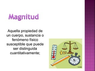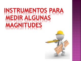 El documento describe diferentes conceptos relacionados con la metrología. Explica que la metrología es la ciencia de las mediciones y sus aplicaciones en diversos campos. Detalla algunas unidades de medida como el metro y kilogramo y diferentes instrumentos para medir magnitudes como balanzas, espectrómetros de masas y manómetros. Resalta la importancia del Sistema Internacional de Unidades para realizar medidas precisas.