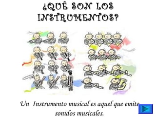 El documento describe las diferentes familias de instrumentos musicales, enfocándose en la familia de cuerdas. Explica que en esta familia el sonido se produce por la vibración de las cuerdas al ser frotadas, pulsadas o percutidas. Además, describe los principales instrumentos de cuerda frotada como el violín, viola, violoncello y contrabajo, detallando sus partes, cómo se tocan y breve historia.