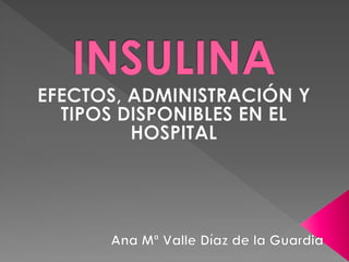 El documento describe el hexámero de insulina porcina y su procesamiento en el cuerpo, así como los diferentes tipos de insulina, sus usos, métodos de administración y ajustes posológicos para lograr un control glucémico óptimo.