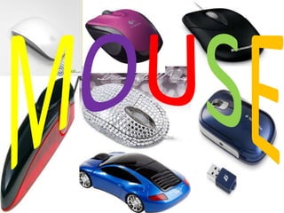 El documento describe los tres tipos de mouse: mecánico, óptico e inalámbrico. Explica que el mouse mecánico usa rodillos para detectar movimiento, mientras que el óptico usa luz y el inalámbrico envía señales sin cables. También brinda detalles sobre sus características y usos.