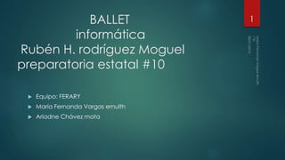 El documento proporciona información sobre el ballet. Explica que el ballet es una forma de danza académica que requiere un control total del cuerpo. Detalla la historia del ballet desde sus orígenes en la Italia del Renacimiento hasta su desarrollo en Francia, Rusia, Dinamarca y Estados Unidos. También describe los diferentes estilos de las escuelas de ballet y las puntas usadas por las bailarinas.