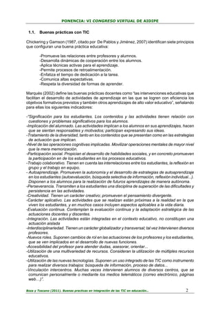Este documento presenta dos estudios de caso de escuelas primarias en Andalucía que han implementado buenas prácticas en la integración de las TIC en la educación. El estudio utilizó estrategias cualitativas como entrevistas y observaciones para describir e interpretar estas prácticas. Más que conclusiones definitivas, ofrece un retrato matizado y optimista pero también crítico del impacto de las TIC en la educación y sirve para reflexionar sobre la educación.