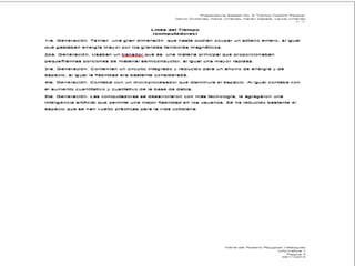 1) El documento describe la línea de tiempo del desarrollo de Internet en México desde 1987 hasta 1997. 2) En 1989, el Tecnológico de Monterrey se convirtió en la primera institución mexicana en establecer una conexión a Internet a través de una línea analógica privada. 3) En 1992 se creó MEXNET A.C. para promover el desarrollo de Internet en México y establecer una red nacional.
