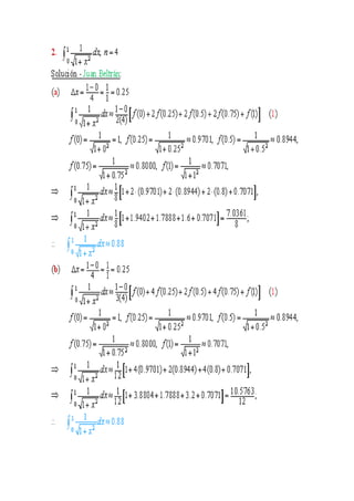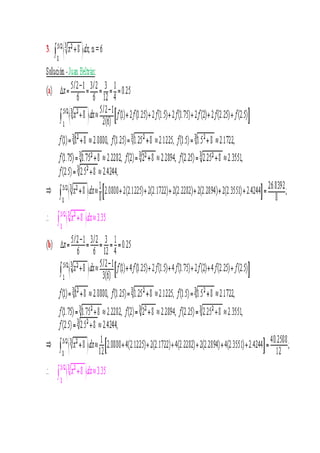 Este documento explica el concepto de integral definida y sus propiedades. Introduce la integral definida como el límite de una suma de áreas de rectángulos cuando el número de rectángulos tiende a infinito y su tamaño tiende a cero. Explica cómo la integral definida puede usarse para calcular áreas delimitadas por curvas y líneas rectas. También resume métodos como las reglas del trapecio y Simpson para aproximar valores de integrales definidas.