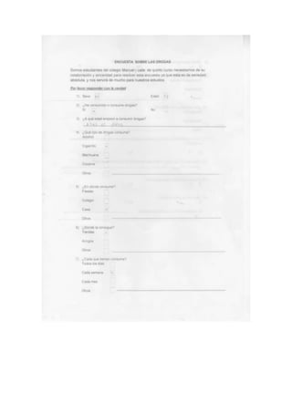 1) Se realizaron encuestas a jóvenes entre 14 y 30 años sobre el consumo de drogas.