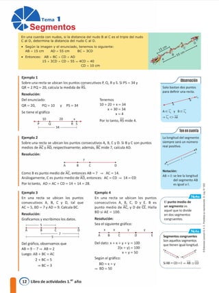 1) El documento presenta los temas de una unidad de geometría que incluyen conceptos como segmentos, ángulos y triángulos.