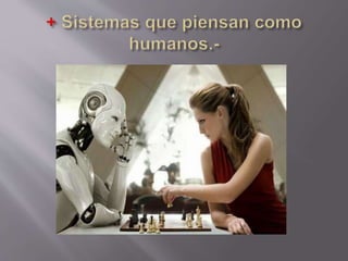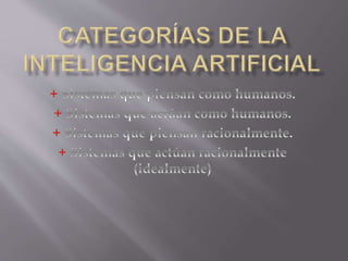 La inteligencia artificial es el estudio multidisciplinario de crear sistemas que puedan resolver problemas por sí mismos usando la inteligencia humana como paradigma. Estos sistemas tratan de emular el pensamiento y comportamiento humanos a través de redes neuronales, resolución de problemas y aprendizaje automático, así como sistemas expertos y agentes inteligentes que imitan la lógica y conducta racionales humanas.