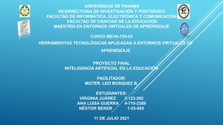 Este documento describe las ventajas y aplicaciones de la inteligencia artificial en la educación. Explica que la IA permitirá personalizar la educación para cada estudiante y que las aplicaciones basadas en IA brindan la oportunidad de estudiar en cualquier momento y lugar. También señala que la IA puede ayudar a los profesores a detectar debilidades de los estudiantes y a crear planes de estudio más efectivos. Algunas aplicaciones de la IA en educación incluyen el reconocimiento de voz, procesamiento de lenguaje natural, reconocimiento visual y aprend