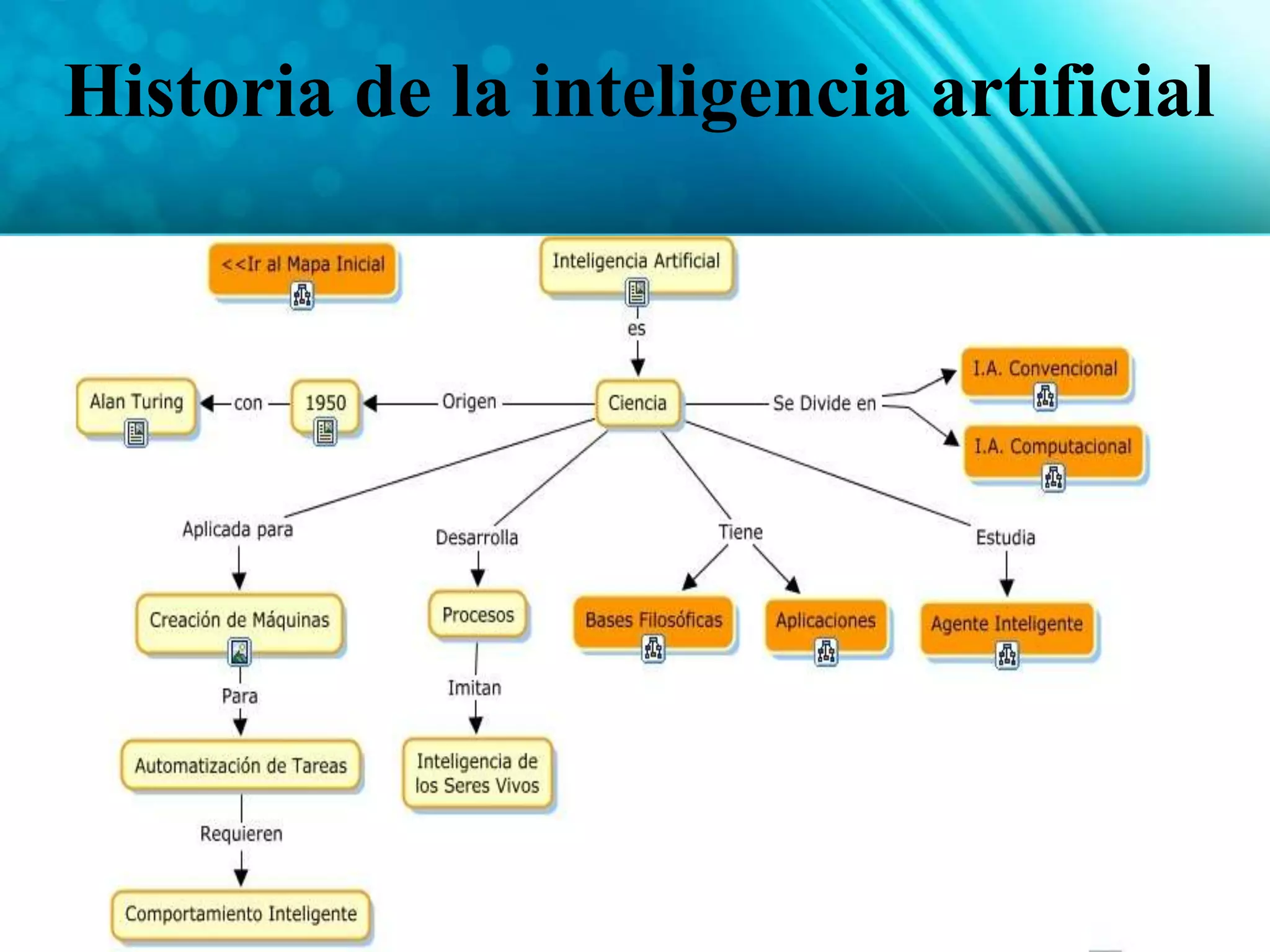 El documento resume la historia y desarrollo de la inteligencia artificial, desde sus inicios en la década de 1940 hasta la actualidad. Explica que la inteligencia artificial surge de avances en lógica matemática y computación, e incluye definiciones clave como la de Turing y McCarthy. También describe diferentes categorías y escuelas de pensamiento dentro de la inteligencia artificial como los sistemas convencionales y de computación.