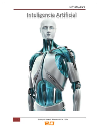 Este documento trata sobre la inteligencia artificial. Explica que la inteligencia artificial es el estudio de cómo crear entidades capaces de resolver problemas usando la inteligencia humana como paradigma. Describe cuatro categorías principales de sistemas de inteligencia artificial: sistemas que piensan como humanos, sistemas que actúan como humanos, sistemas que piensan racionalmente y sistemas que actúan racionalmente. También discute la posibilidad de incorporar componentes emocionales en los sistemas de inteligencia artificial para aumentar su efic
