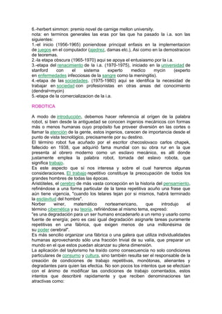 La inteligencia artificial (IA) se define como la capacidad de los ordenadores, robots u otros dispositivos para realizar tareas que normalmente requieren inteligencia humana, como resolver problemas o responder a órdenes verbales. La IA imita los procesos del cerebro humano a través de redes neuronales y circuitos electrónicos avanzados. Los avances en IA han permitido el desarrollo de autos robot que pueden conducir de forma autónoma y segura, aunque todavía tienen limitaciones. Se espera que en el futuro la IA continúe mejorando y permita que las