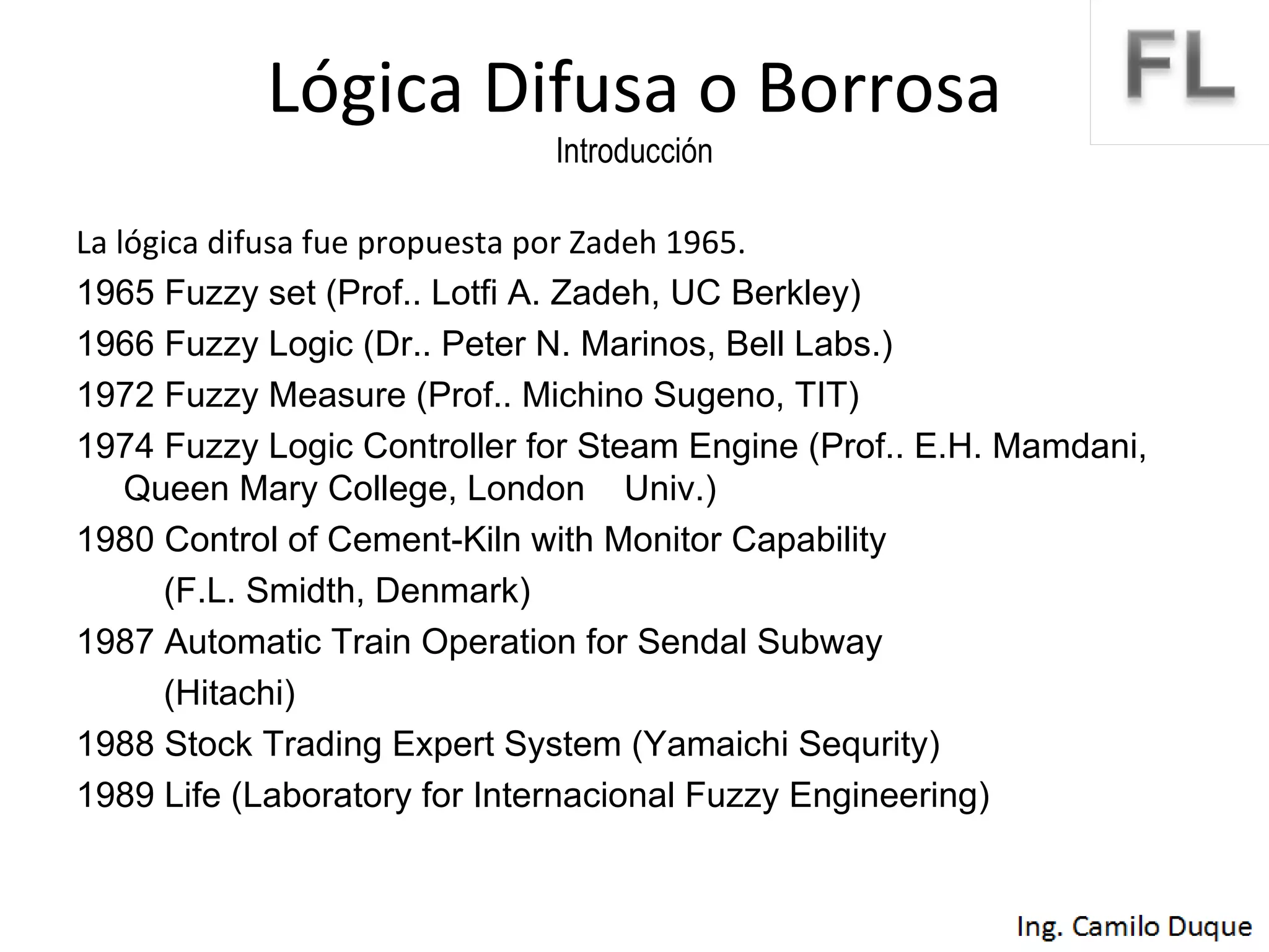 La lógica difusa surge como un intento de formalizar el conocimiento impreciso mediante conjuntos difusos y funciones de membresía. La lógica difusa fue propuesta en 1965 y desde entonces se ha aplicado en diversas áreas como control de procesos, sistemas expertos y reconocimiento de patrones. Los conjuntos difusos permiten representar conceptos vagos usando grados de pertenencia en lugar de valores booleanos.