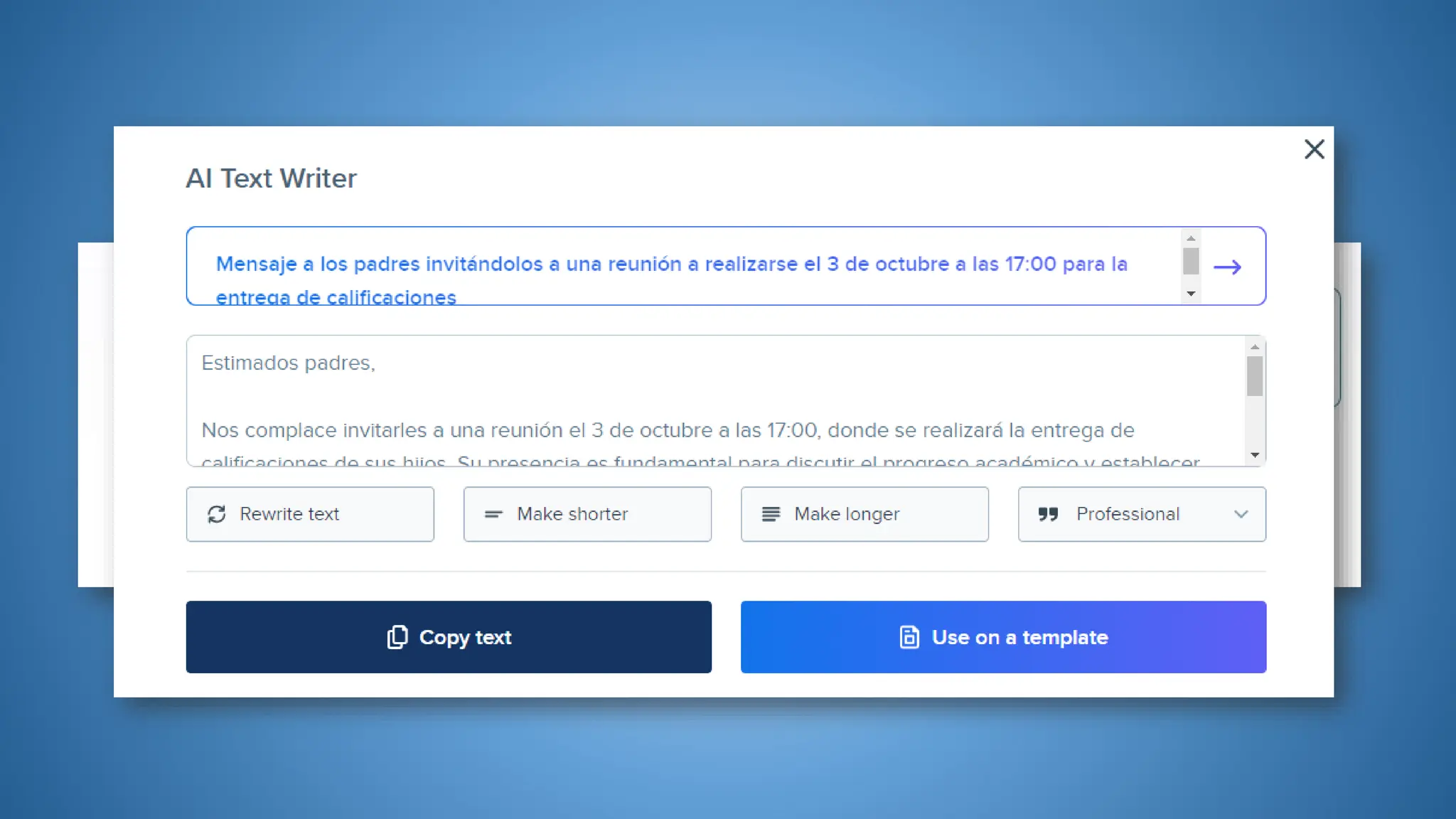 Nos complaceinvitarles a una reunión el 3 de octubre a las 17:00, donde se realizará la entrega de calificaciones de sus hijos. Su