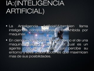 La inteligencia artificial (IA) es la simulación de procesos de inteligencia humana por parte de máquinas, abarcando capacidades como aprender, resolver problemas y emular el pensamiento. Desde su acuñación en 1956, la IA ha evolucionado para incluir sistemas que controlan juegos y responden a consultas, rotulándose por su habilidad para imitar acciones y comportamientos humanos. La animatrónica, en conjunción con la IA, ha dado lugar a robots con apariencia y movimientos que simulan a los seres humanos.