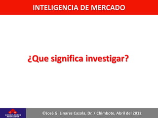 La inteligencia de mercado se define como la recolección, análisis e interpretación de información del mercado para ayudar a la administración a comprender el entorno del mercado, identificar problemas y oportunidades, y desarrollar estrategias de marketing. El documento discute varias definiciones de inteligencia de mercado de diferentes autores y describe sus funciones principales como proveer información, analizar problemas, monitorear planes de marketing y espiar la competencia. También cubre los tipos principales de investigación de mercado cualitativa y cuantitativa.