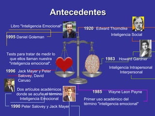 El documento habla sobre la inteligencia emocional. Explica que surgió como un concepto en los años 80 y 90, con autores como Payne, Mayer, Salovey y Goleman. Goleman definió la inteligencia emocional como la capacidad de comprender y guiar las emociones para mejorar los resultados. Identifica componentes como la autoconciencia, autorregulación, empatía y habilidades sociales. Finalmente, discute la importancia de desarrollar la inteligencia emocional para lograr la felicidad, éxito y buenas relaciones inter
