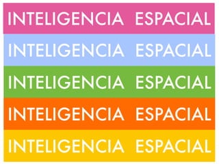 El documento presenta información sobre la inteligencia espacial, incluyendo su definición como la capacidad de resolver problemas o crear productos valiosos en una o más culturas. También cubre temas como las múltiples formas en que se manifiesta, actividades como dibujar y construir que la ejercitan, y los beneficios de desarrollar esta habilidad. El documento fue presentado por cuatro estudiantes de la Escuela de Derecho del Centro de Enseñanza Técnica y Superior.