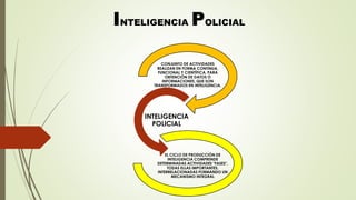 El documento describe las principales fases del ciclo de producción de inteligencia policial: 1) orientación del esfuerzo de búsqueda para determinar las necesidades de información e inteligencia; 2) búsqueda de informaciones a través de la planificación y distribución del trabajo entre los órganos de búsqueda; y 3) procesamiento y difusión de la inteligencia obtenida. La orientación del esfuerzo incluye la formulación de elementos esenciales de información y órdenes de búsqueda para guiar de man