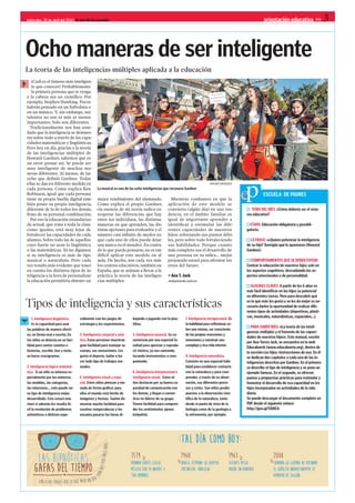 Este documento describe la teoría de las inteligencias múltiples de Howard Gardner y cómo se puede aplicar en la educación. Se explica que tradicionalmente se ha pensado que la inteligencia se demuestra a través de las habilidades lingüísticas y matemáticas, pero que en realidad hay al menos ocho tipos de inteligencia diferentes. También se proporcionan ejemplos de cómo estimular el desarrollo de la inteligencia en los niños pequeños a través del juego y aprovechando situaciones cotidianas.