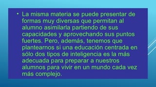 Howard Gardner, psicólogo y pedagogo, propone la teoría de las inteligencias múltiples, argumentando que la medición del cociente intelectual no captura la totalidad de la inteligencia humana. Su obra principal, 'Estructuras de la mente', describe ocho tipos de inteligencia y ha influido profundamente en la educación, inspirando métodos de enseñanza que promueven el descubrimiento y desarrollo de estas habilidades. La teoría sugiere que al estimular las inteligencias individuales, se facilita un aprendizaje significativo y se mejora la disciplina y el rendimiento académico de los estudiantes.