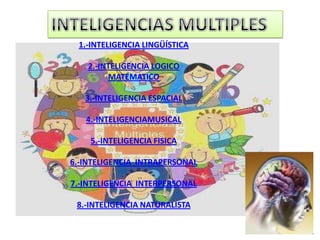 El documento presenta la teoría de las inteligencias múltiples de Howard Gardner, que postula que existen diversas habilidades cognitivas (lingüística, lógico-matemática, espacial, musical, kinestésica, intrapersonal, interpersonal y naturalista) en cada individuo. Se destaca la importancia de reconocer y estimular estas inteligencias desde la infancia para prevenir problemas escolares y promover un desarrollo integral efectivo. A través de la identificación de las fortalezas, se pueden adaptar los planes educativos a las necesidades de los estudiantes, mejorando su aprendizaje y motivación.