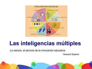 El documento presenta la teoría de las inteligencias múltiples de Howard Gardner. Según esta teoría, la inteligencia no es una capacidad única y cuantificable, sino que existen múltiples inteligencias como la lingüística, lógico-matemática, espacial, musical, corporal-cinestésica, intrapersonal, interpersonal y naturalista. Cada persona tiene un perfil de inteligencia único. La teoría propone aplicar este enfoque en la escuela a través de diversificar las actividades, evaluaciones y materiales para