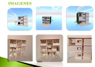 El documento describe los aspectos fundamentales del diseño de una vivienda unifamiliar. Se divide la planta en módulos para determinar la estructura y distribución interior. La zona pública se ubica en la planta baja orientada al norte, mientras que la zona privada y las habitaciones se ubican en las plantas superiores, aprovechando la luz y ventilación naturales.