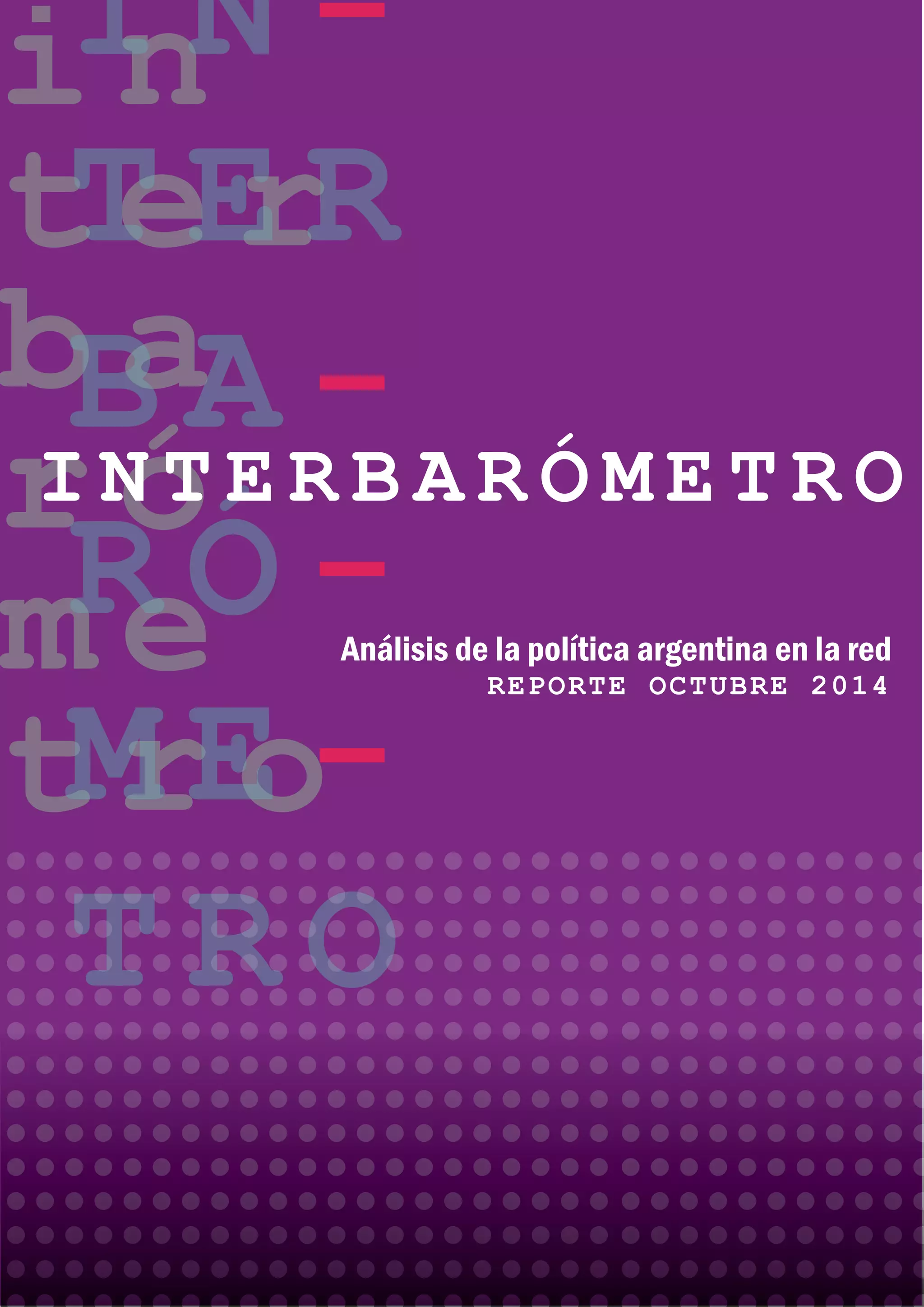 El documento presenta los resultados del Interbarómetro correspondientes a septiembre de 2014. Cristina Fernández de Kirchner continúa siendo la política más mencionada en internet, seguida por Daniel Scioli y Mauricio Macri. Los temas más conversados son Justicia, Seguridad y Corrupción. El informe analiza las menciones a políticos, la evolución de la conversación, los temas de coyuntura y problemas asociados a cada referente político.