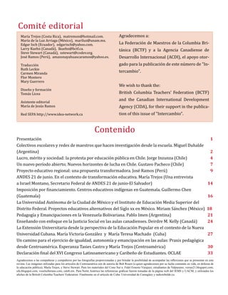 El documento describe los colectivos escolares y redes de maestros que realizan investigación desde la escuela en América Latina. Estas experiencias se han organizado a través del "trabajo en red" y los "encuentros", con el objetivo de democratizar el conocimiento de manera colectiva y contextualizada. Una parte central son los "Encuentros Iberoamericanos" que se llevan a cabo cada tres años y que buscan defender la educación pública y reconocer a los docentes como intelectuales del conocimiento pedagógico. El documento