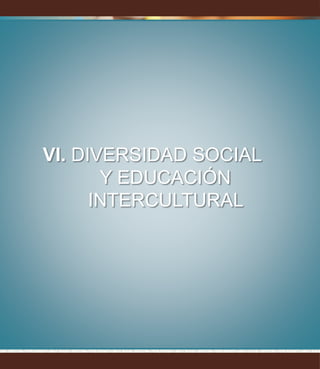 Este documento presenta conceptos clave relacionados con la diversidad social y la educación intercultural. Explica términos como cultura, identidad cultural e identidad personal, haciendo énfasis en que son constructos sociales. También define etnicidad y distingue entre los conceptos de raza y etnia. Por último, diferencia entre multiculturalidad, pluriculturalidad, transculturalidad e interculturalidad, señalando que esta última implica la interacción activa entre culturas.