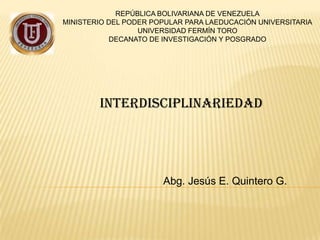 Este documento resume la interdisciplinariedad como la integración sistemática de teorías y métodos de diferentes disciplinas para abordar los fenómenos de manera multidimensional. Explica que la interdisciplinariedad es importante para el desarrollo científico y la resolución de problemas de manera integral. También describe diferentes tipos de interdisciplinariedad desde los puntos de vista educativo y de acuerdo con autores como Marcel Biosot y Heinz Heckhause.