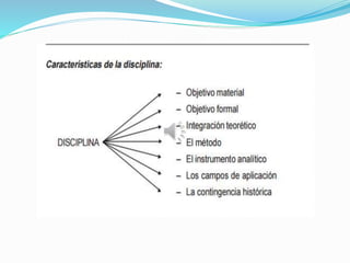 Este documento describe la interdisciplinariedad y sus características. Surge como una alternativa a la especialización y busca involucrar múltiples disciplinas para resolver problemas complejos. Se presentan diferentes tipos de interdisciplinariedad y sus elementos clave, como la integración del conocimiento de diversas ciencias para beneficiar a la sociedad. Además, se explica que Piaget consideró a la interdisciplinariedad como un principio para organizar el conocimiento de manera dinámica y científica.