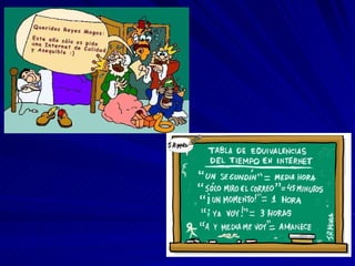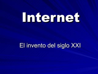 Internet surgió en los años 1960 con fines militares, pero en 1983 se expandió a Europa y Japón para su uso mundial. Tim Berners-Lee luego creó HTTP y HTML, dando origen a la World Wide Web y permitiendo el comercio en línea. Actualmente, casi 20 millones de españoles usan internet regularmente, aunque su adicción también representa un peligro.