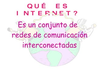 Internet es un conjunto de redes interconectadas que funciona mediante ordenadores y protocolos como HTTP y TCP/IP, y permite acceder a información a través de la World Wide Web de forma universal y fácil de usar. Ofrece servicios como correo electrónico, transferencia de archivos y conversaciones en línea, y permite buscar información y comunicarse con personas lejos a través de protocolos que establecen un lenguaje común entre redes.